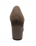 Zapato de salón en ante topo, con tacón adornado.Suela de goma.