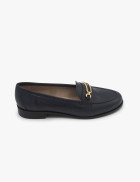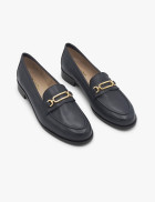 -  Mocasín con antifaz y hebilla dorada en piel azul.
