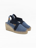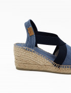- Alpargata de yute y lona vaquera con efecto lavado con elástico azul..