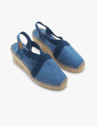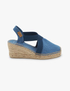 - Alpargata de yute y lona vaquera con efecto lavado con elástico azul..