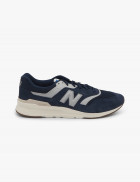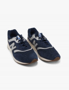 -  Zapatilla en ante y malla textil azul .