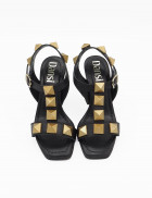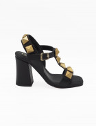 -  Sandalia en napa negra con adornos en bronce.