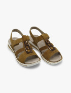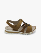 -  Sandalia hecha en ante caramelo con hebilla  en el empeine.
