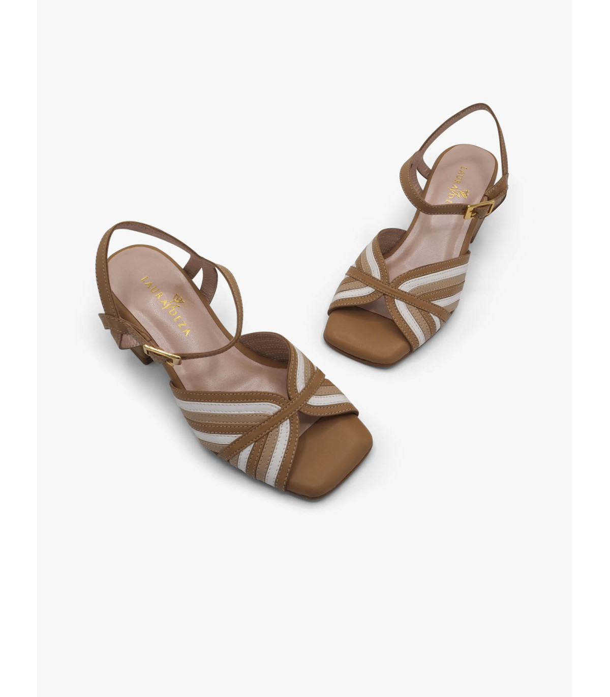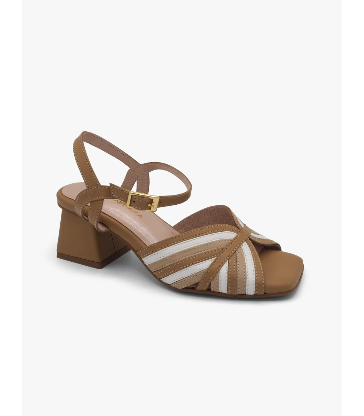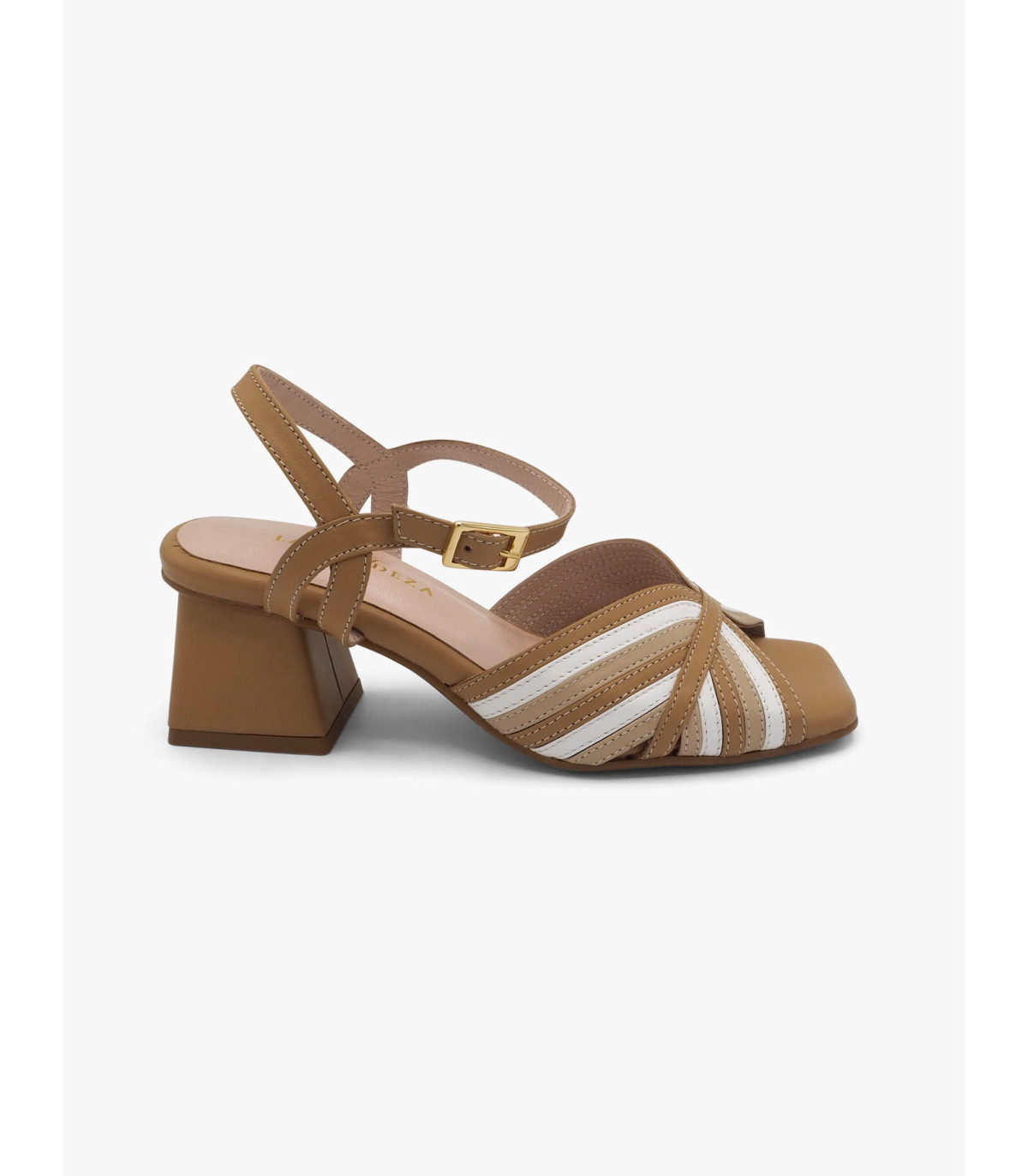 -  Sandalia en piel mestizo oil,blanco y clay.