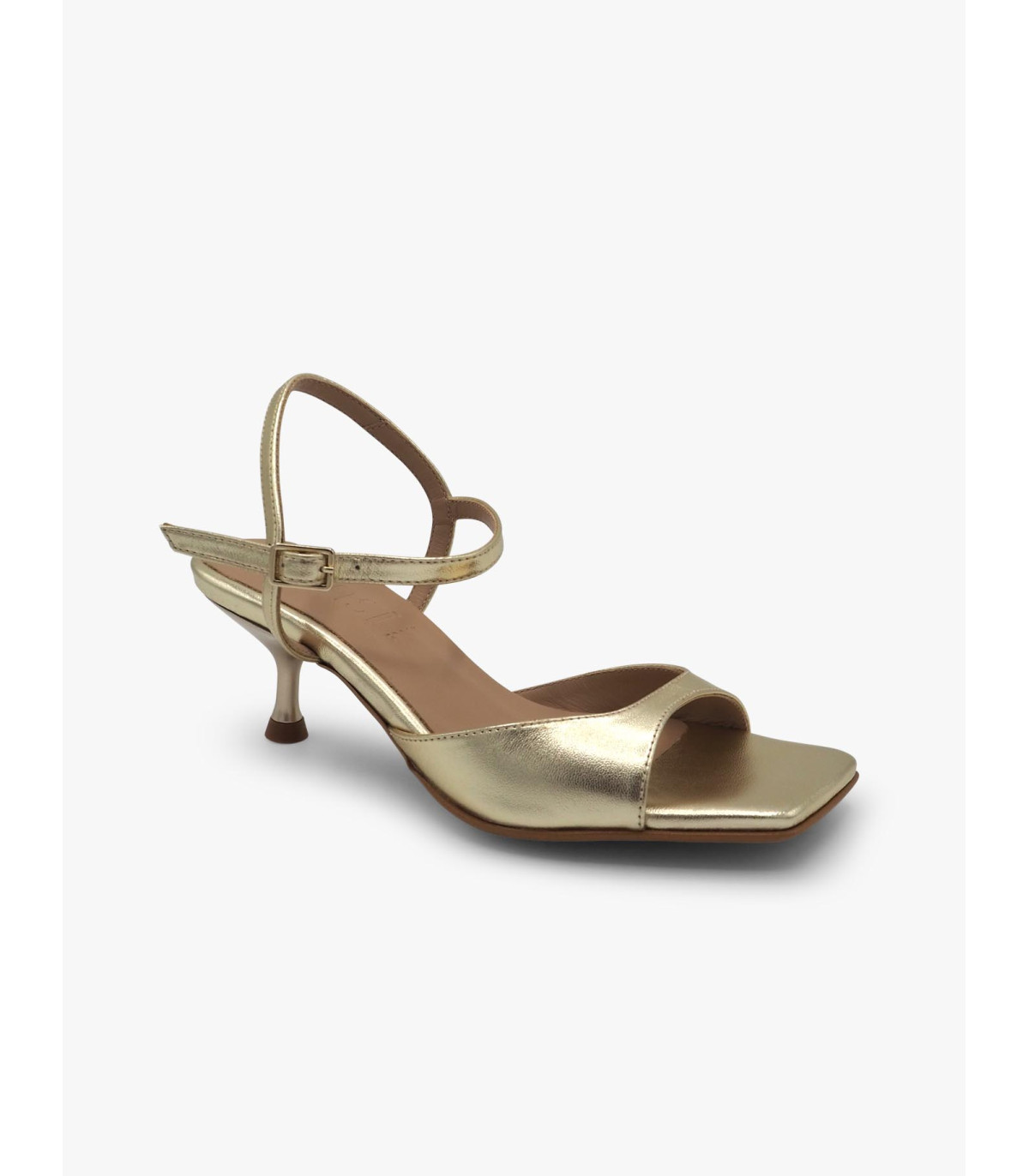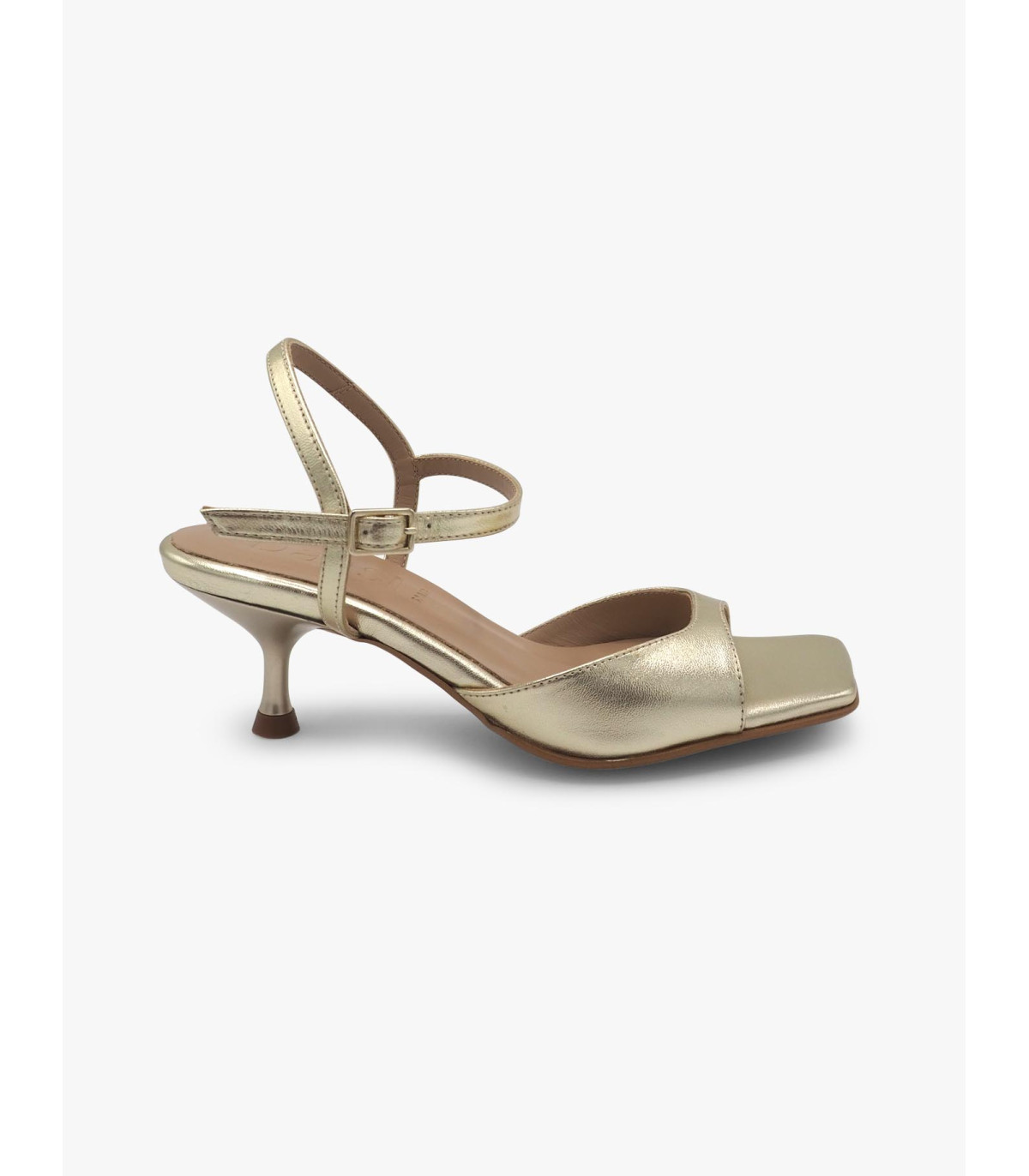 -  Sandalia en piel oro.